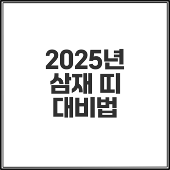2025년 삼재 띠와 대처 방법 총정리하기 2025년에 삼재에 해당하는 띠를 미리 파악하고 대비하세요. 특히 돼지띠, 쥐띠, 소띠는 운이 불안정해질 가능성이 높으므로 주의가 필요합니다. 목차 2025년 삼재 띠는 무엇인가? 돼지띠 - 들삼재의 특징 쥐띠 - 눌삼재의 특성 소띠 - 날삼재의 주의사항 삼재가 미치는 영향과 주의 사항 재물운 감소와 금전 손실 💸 건강 문제 발생 가능성 ⚠️ 인간관계 갈등 증가 🤝 .. 카테고리 없음 2025.02.22